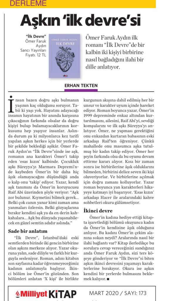 İlk Devre kitabım Milliyet gazetesi Kitap ekinde yer aldı.
