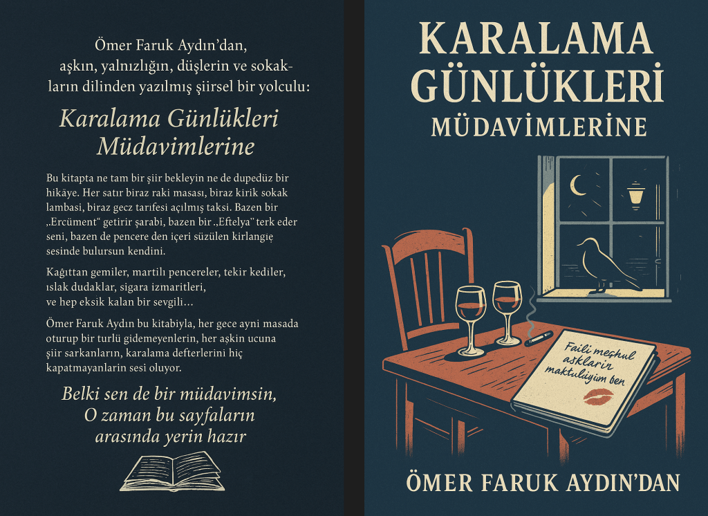 Ömer Faruk Aydın bu kitabıyla, her gece aynı masada oturup bir türlü gidemeyenlerin, her aşkın ucuna şiir sarkanların, karalama defterlerini hiç kapatmayanların sesi oluyor.